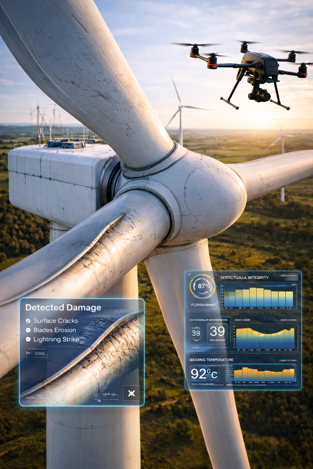 Monitor, analyze, and optimize wind turbine performance through aerial data and advanced analytics, enabling early fault detection and improved operational efficiency.